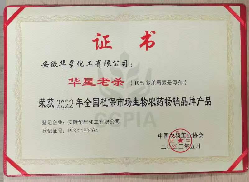 華星老殺榮獲2022年全國(guó)植保市場(chǎng)生物農(nóng)藥暢銷品牌產(chǎn)品
