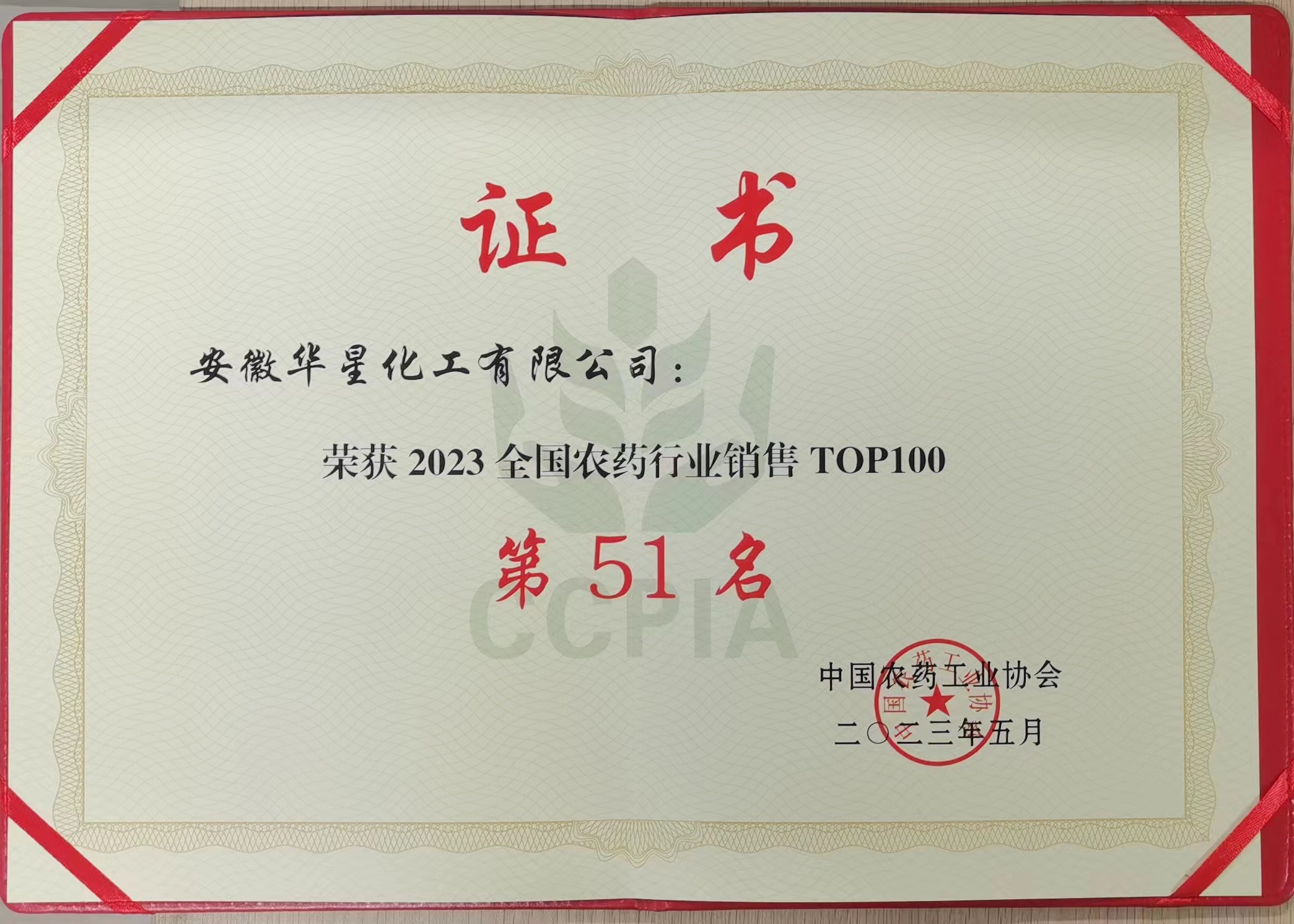 榮獲2023全國(guó)農(nóng)藥行業(yè)銷售TOP100第51名